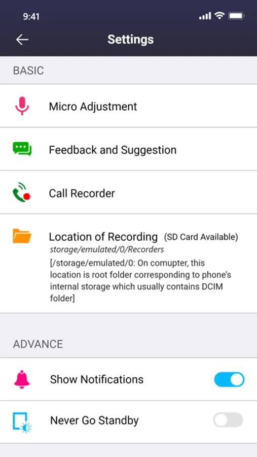 You can reliably record your meetings, personal notes, speeches, lectures, songs with high quality. There is no time limits just depend on your remaining space of internal storage.