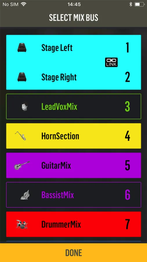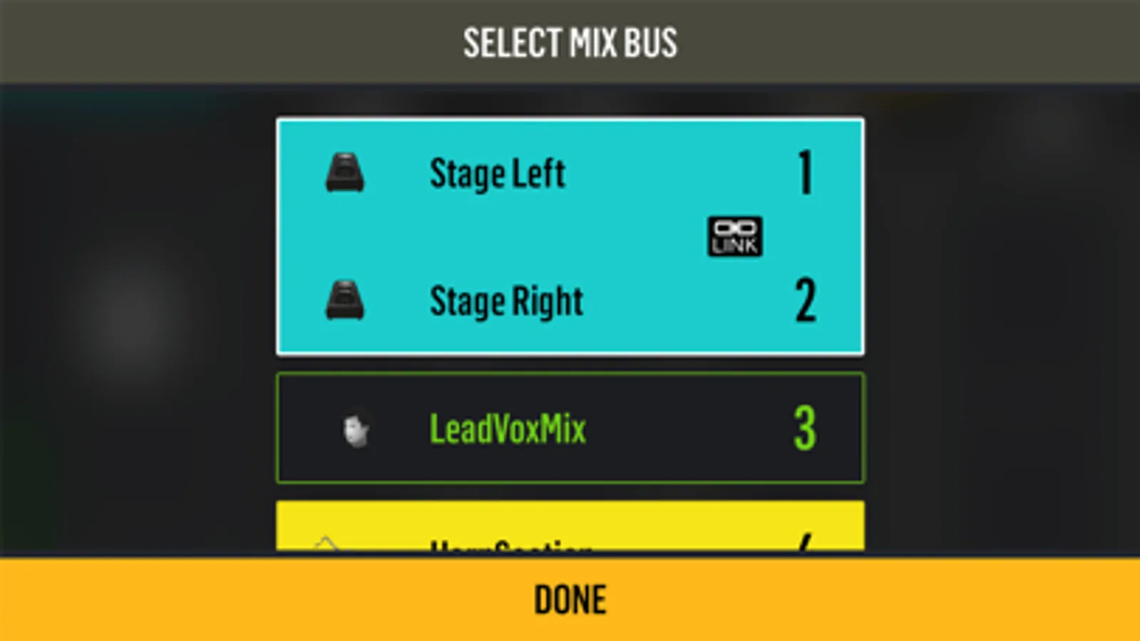 * Select the mix bus for your personal mono/stereo monitoring control from your phone