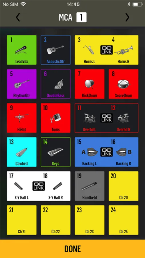 With MX-Q, musicians can control their own monitor bus mix (mono/stereo) with full access to all input channels individually. Input channels can also be grouped into 4 MCA (Mix Control Association) wheels for easy control of multiple channels. Each band member can group inputs to their own liking, greatly simplifying the individual monitor balance during performance.