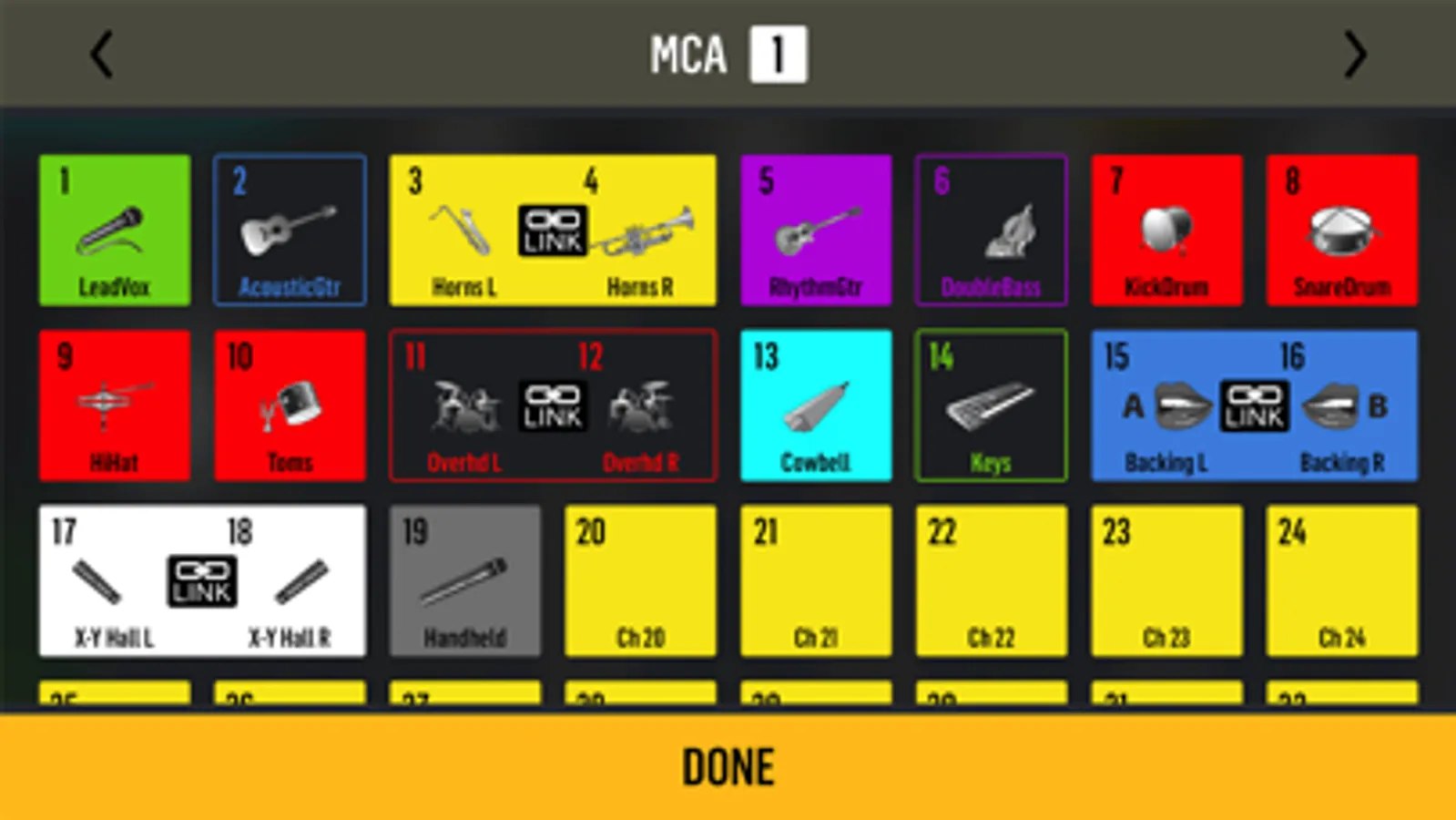 * Assign any combination of inputs to four available MCA (mix control association) wheels