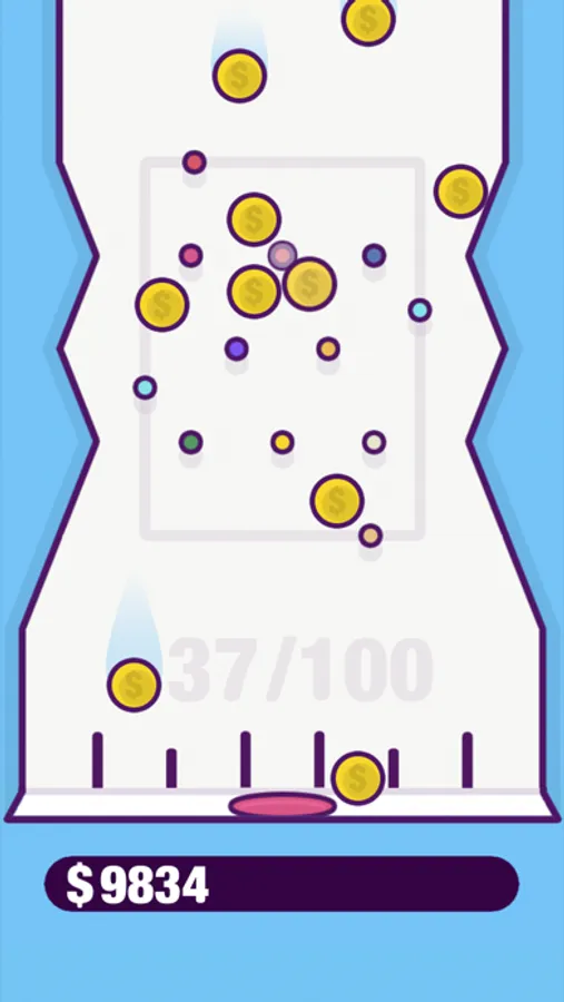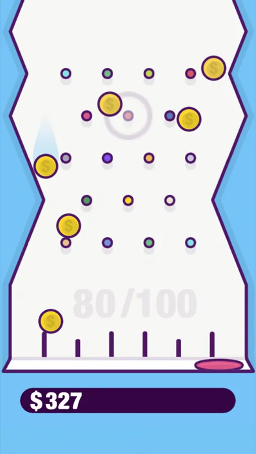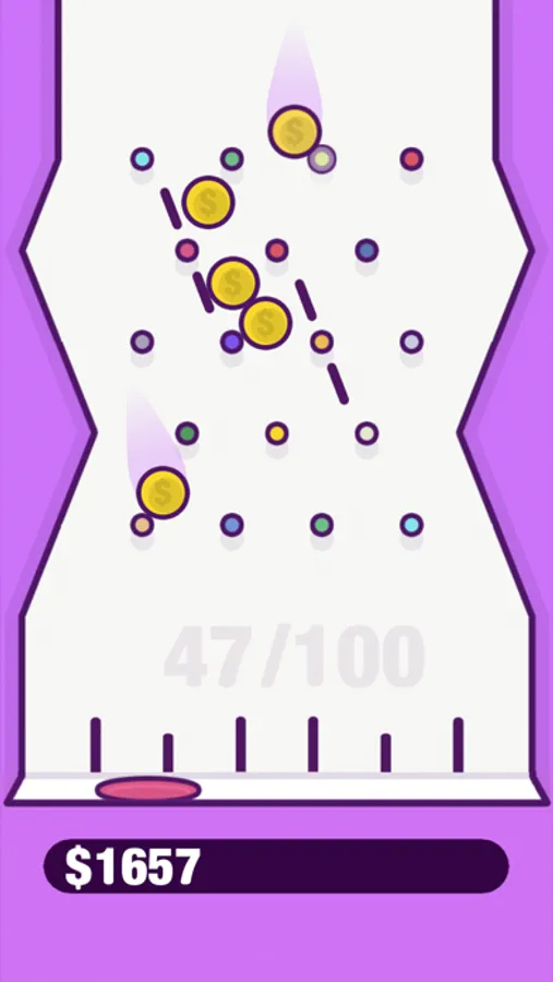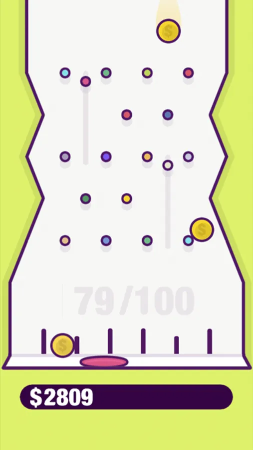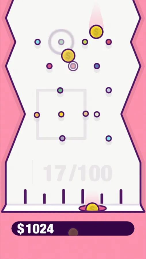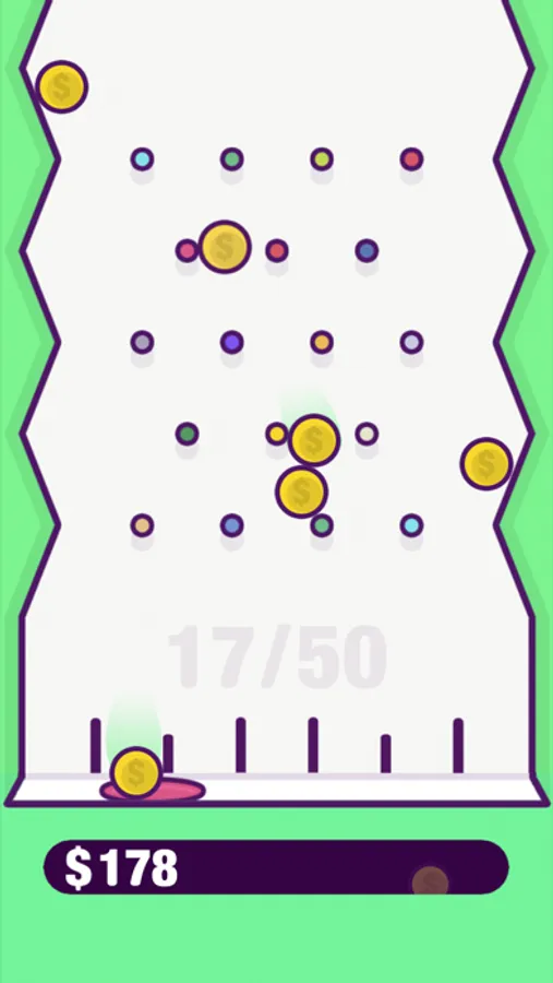 Collect virtual in-game coins for fun in this simple plinko-style arcade game, featuring a satisfying coin-collecting experience with calming gameplay.