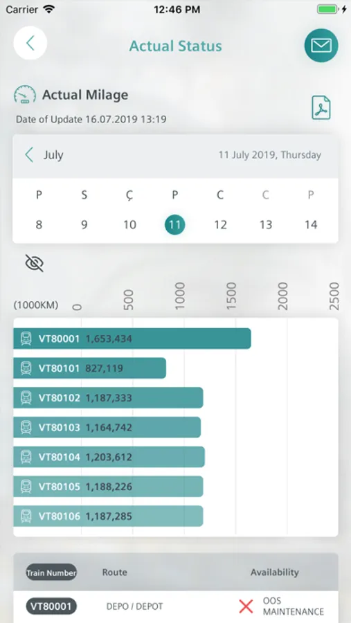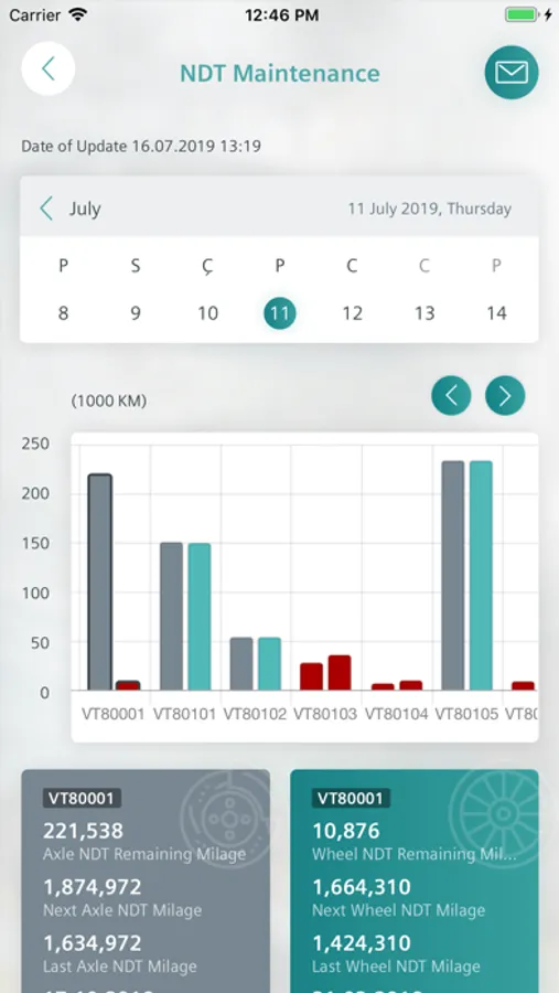 It visualizes the following data of the train sets that Siemens Mobility Ulaşım Sistemleri A.Ş. undertakes maintenance activities in Ankara TCDD YHT Etimesgut Maintenance Facility;