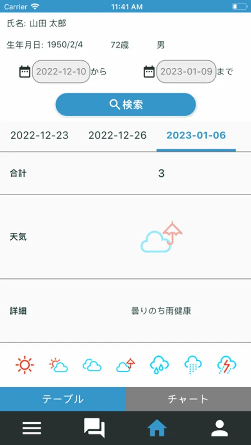 本アプリは介護施設に入所されている患者様及びご家族様が、患者様の日々の健康情報を閲覧するためのアプリです。