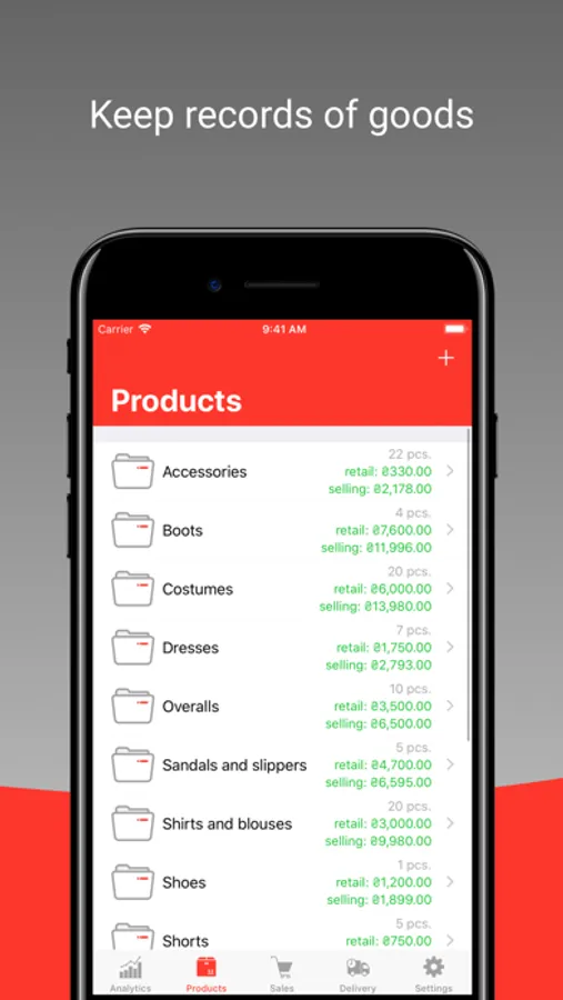 Key indicators, such as sales, balances, are displayed on the main screen and are supplemented with graphs, periods of high sales and changes in the volume of commodity balances will be visible. Information about the amount, including cost and quantity of goods, is displayed in each product group.