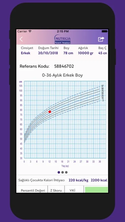• Hasta bilgileri tutulmaz; persantil değerleri yüksek güvenlikli bir kod numarası ile kaydedilir. Böylece gerektiğinde hastanın persantil değişimleri izlenebilir.