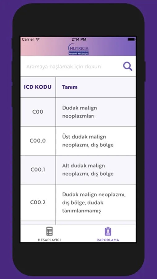 Raporlama bölümünde yer alan ICD-10 kodları, elektronik raporlama sisteminde enteral beslenme ürünleri için yapacağınız işlemler sırasında size yardımcı olacaktır.