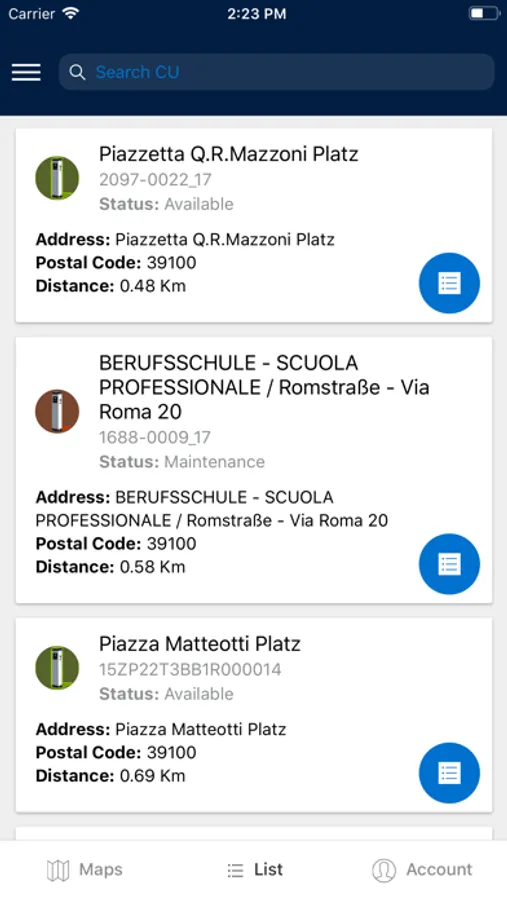 - mostrare un elenco di colonnine in ordine di distanza rispetto alla propria posizione
