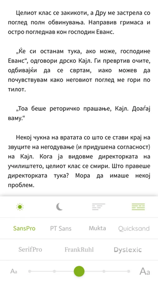 • Прилагоди го читањето во зависност од потребите – Одбери го омилениот фонт, големината на текстот и бојата на екранот