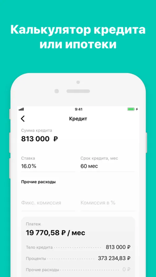 С нашим приложением вы можете рассчитать ежемесячный платеж и реальную стоимость кредита или ипотеки.