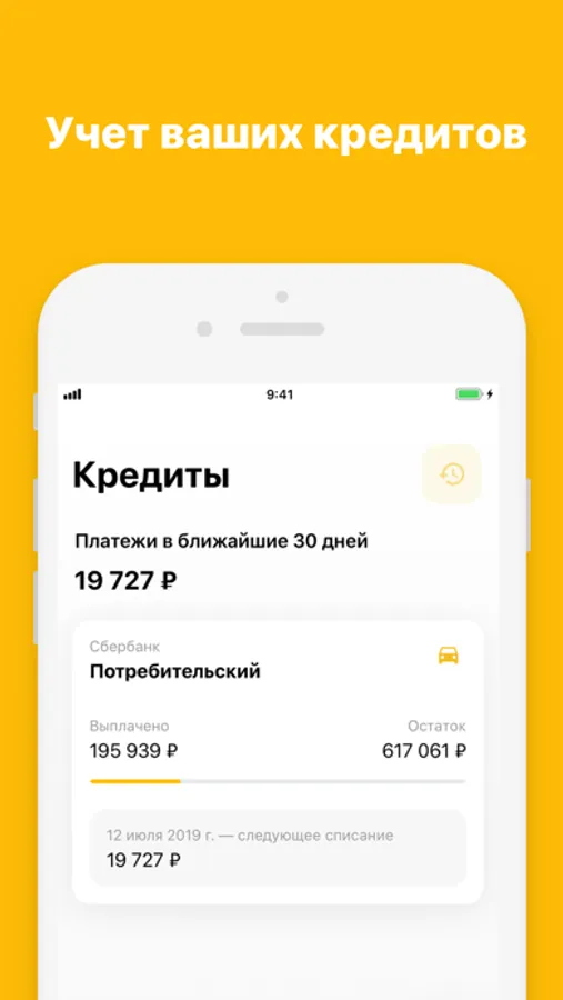 – учет кредита позволит отмечать все внесенные платежи, видеть текущий остаток и получать Push-уведомления за за неделю, за 3 дня и в день списания платежа