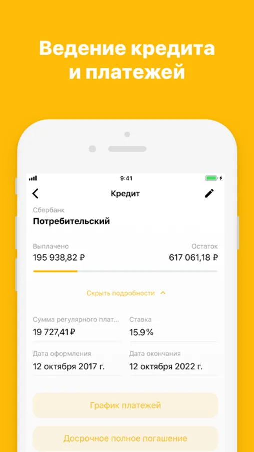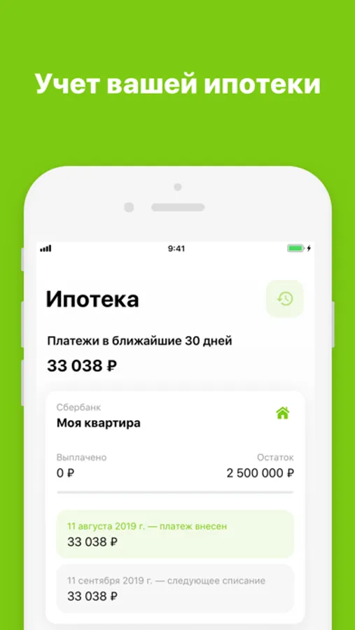 – учет ипотеки позволит отмечать все внесенные платежи, видеть текущий остаток и получать Push-уведомления за за неделю, за 3 дня и в день списания платежа