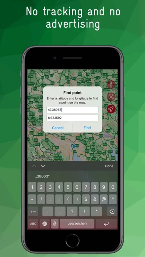 A location function shows the current position, the app is ad-free and there is no tracking.
