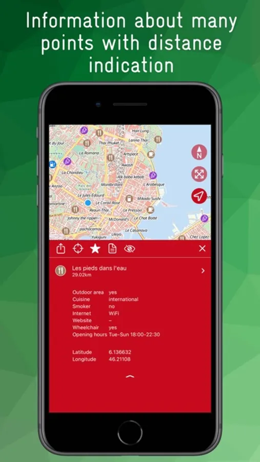 POIs are grouped into categories and can be displayed as layers. For example, you can display all restaurants, public transport lines, banks, hiking trails, charging stations and doctors on the map. The size and overlap of the icons can be adjusted to improve clarity.