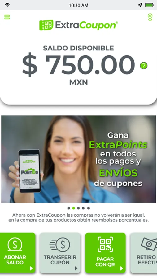 ExtraCoupon® es la plataforma digital donde todos tus pagos te recompensan. Esto es gracias a que al pagar tus consumos en establecimientos y en línea desde la app en tu celular obtendrás bonificaciones, descuentos y accederás a cupones digitales para que adquieras las mejores promociones de la red de negocios participantes. Vincula a tu cuenta tarjetas de crédito, débito, y recarga saldo al wallet con efectivo de manera 100% segura. ¿Cómo funciona? Muy sencillo: Genera un QR desde la aplicación por el monto a pagar, el cual se descontará de tu saldo disponible y será procesado en segundos para que obtengas los beneficios exclusivos del comercio, así como saldo extra en forma de ExtraPoints®. Usa tus recompensas para obtener descuentos al pagar el recibo del teléfono, internet, luz, agua o servicios de streaming o tus consumos en establecimientos locales, con tus marcas favoritas y donde sea que acepten ExtraCoupon®. Y, por si fuera poco, puedes acumular tu saldo para futuras compras, compartirlo con otros usuarios y hasta enviarlo o recibirlo desde el extranjero. No lo pienses más y descarga ExtraCoupon® ya mismo.