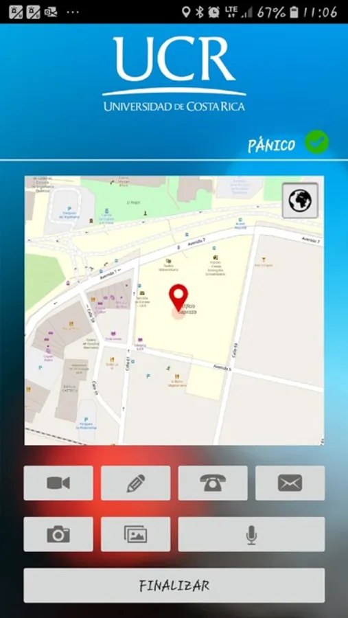 Permite a las autoridades, docentes, estudiantes y funcionarios administrativos, de la Universidad de Costa Rica, enviar en tiempo real una señal de alerta al Centro de Monitoreo de la Sección de Seguridad y Tránsito.