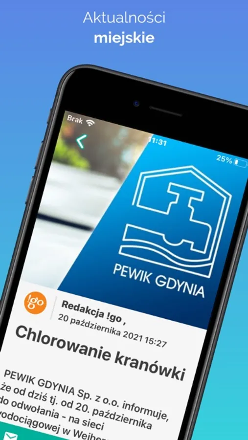 Używaj aplikacji !go Wejherowo, aby poznać różne instytucje i komunikować się z nimi. Czytaj najnowsze wiadomości i komunikaty. Poznaj swój samorząd i komunikuj się z radnymi oraz władzami miasta. Pomagaj miastu rozwijać się - zgłaszaj usterki mienia oraz bierz udział w konsultacjach społecznych i badaniach opinii.