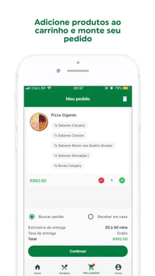 No app, você encontra de forma rápida o cardápio completo e ainda pode utilizar a ferramenta de busca para localizar diretamente os produtos que você deseja.