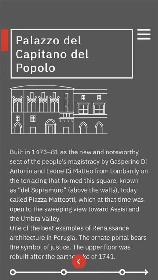 The app is available in different languages and it provides accurate historical and cultural informations, insights to discover the city districts and also a high-detailed map of museums, monuments and events of the historical centre of Perugia.
