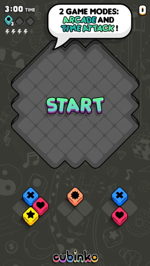 • In ARCADE mode there is no time limit, but you need to complete the missions to get more moves and keep playing. In TIME ATTACK mode things change, you run out of time but there is no limit to your moves, try to take the time to make the most points!