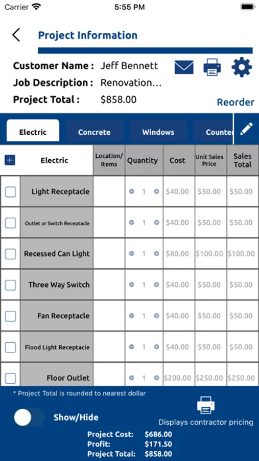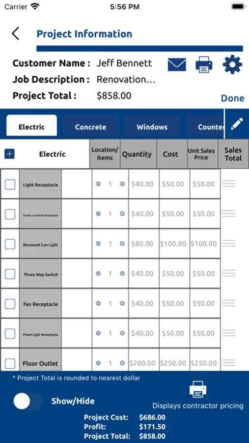 ImmediaBid is for every type of contractor. ImmediaBid is more than your typical invoice/estimating app. ImmediaBid not only creates estimates and invoices directly from your iPad, but it also helps establish job costs and job profit based upon the amount of gross profit you desire. ImmediaBid is also a database for all your current and future projects. Whether you’re a building contractor, plumber, electrician, painter or most any other type of contractor this app will help save time at the job site, as well as keep you organized.