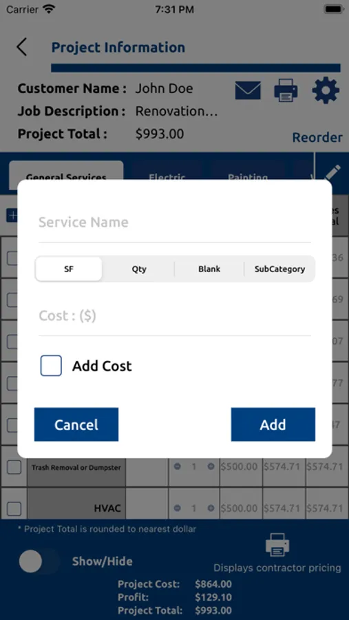 Simply upload your own pricing one time and the amount of gross profit you desire and your life just became easier. Once the pricing is set all you need to do is select the service or item and quantity....then let ImmediaBid do the rest. Once all your information has been inserted into the app , ImmediaBid will either print or email your estimate/invoice to your customer. It’s that easy!