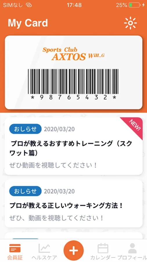 スポーツクラブ アクトスをご利用の皆様が、施設へ来館の際、会員証としてご利用いただけるアプリになります。