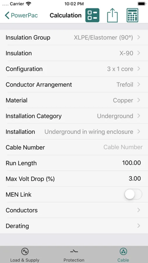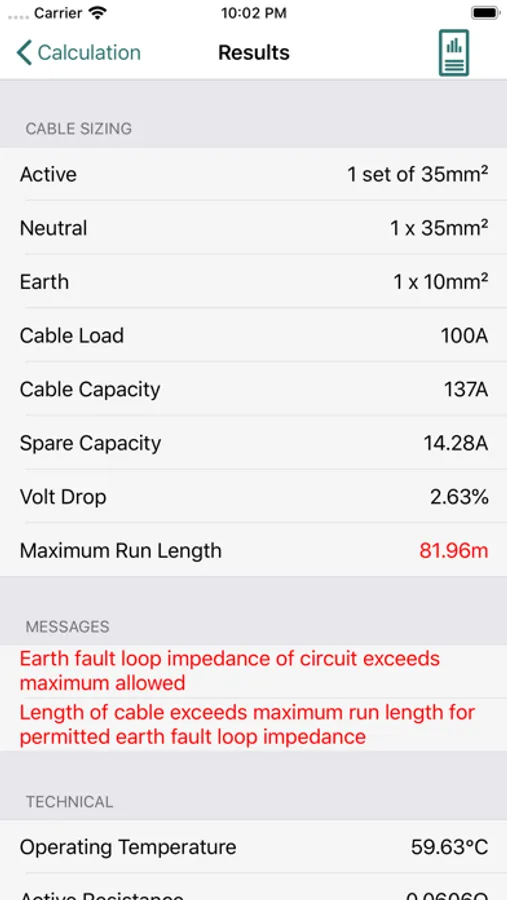 No longer will the user have to carry a laptop onsite to check whether a current Cable Size complies with Load, Volt Drop or Earth Fault Loop Impedance or to do a new calculation based on Load, Volt Drop and Earth Fault Loop Impedance