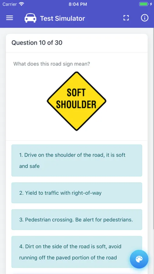 Our app is developed in a fashion that makes learning simple and direct with questions that are written based on the official Driver's Handbook. You will be able to concentrate entirely on learning from the questions efficiently since the interface is uncomplicated and there are NO ADVERTISEMENTS featured at all!