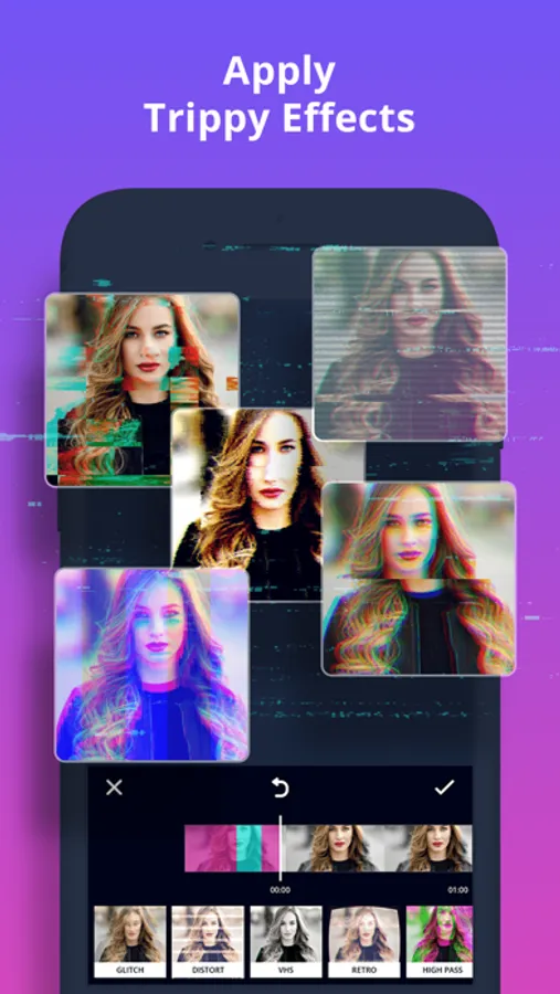 - Glitch Art offers an extensive library of exclusive effects to distort your photos and videos in creative ways.
