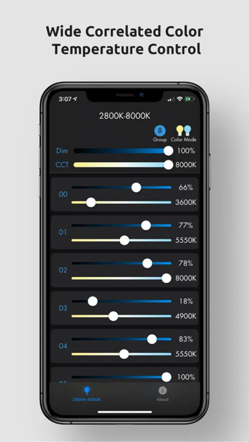 - CCT mode could control 3200K-5600K or 2800K-8000K depending on different light devices.