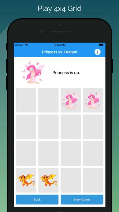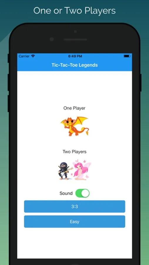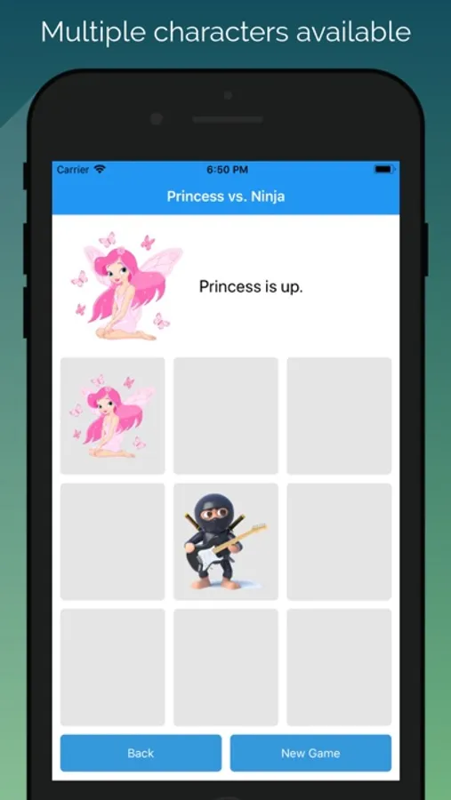 Play the classic tic tac toe game on your phone with a new twist. Play with charming princesses, ninjas, and trucks to see who will win the tournament. You are able to switch players from princess to ninja to truck in several combinations, to increase the fun. You can play Tic Tac Toe against an AI opponent, or against a friend on yours device screen.