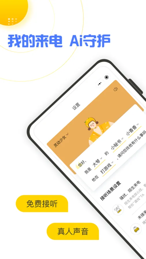 【专属助理,免费接听】:香蕉是你的专属电话助理,具备多种真人音色,在你开会/忙碌时,免费为你接听电话~
