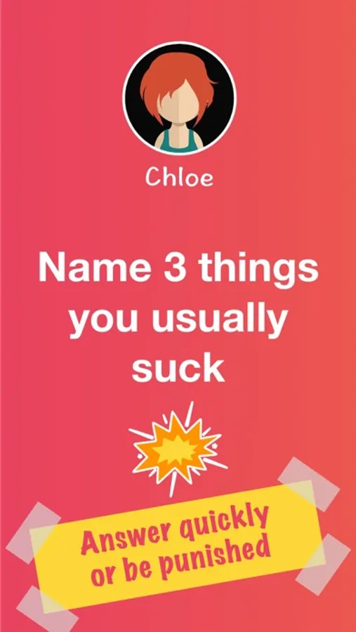 Each player has limited time, few seconds, to say whatever is asked to them. Any failure should be punished! Which of you will win? Which will expose its secrets and untold things?