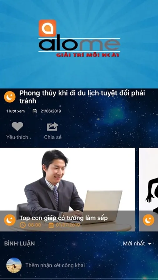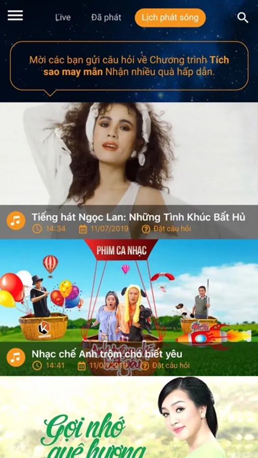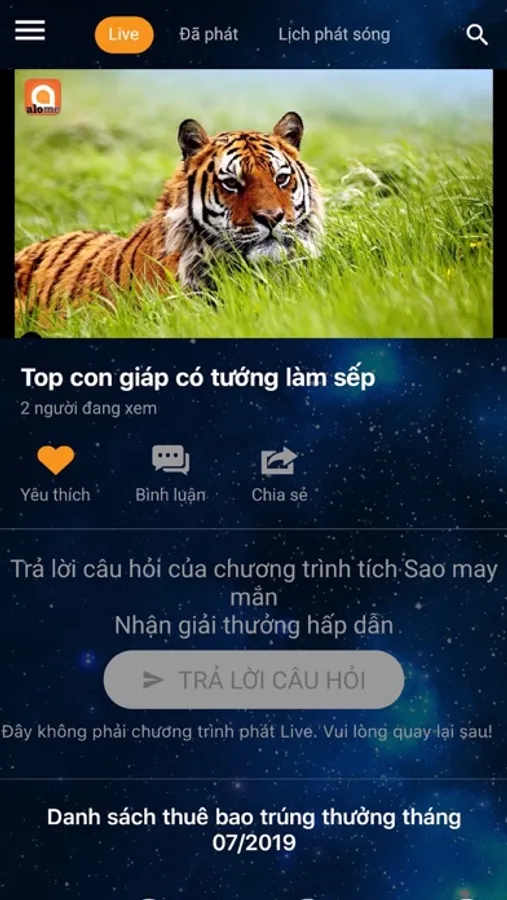 Ứng dụng phát trực tiếp hoặc phát lại các chương trình hấp dẫn của tổng đài dịch vụ Alome như: chuyên mục tâm sự gia đình, tư vấn sức khỏe giới tính, chuyện phòng the, dự đoán tử vi 12 con giáp, cung hoàng đạo.