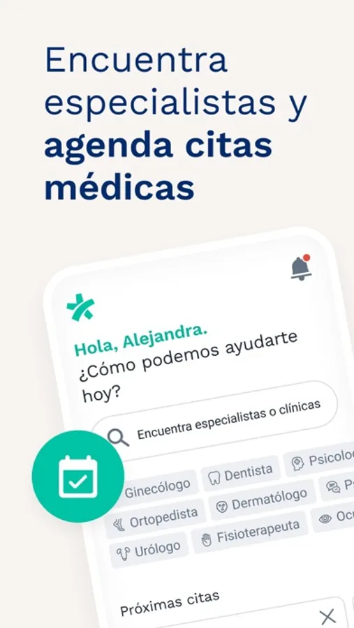 Agenda una cita presencial o por videollamada con un especialista de la salud y gestiona fácilmente tus visitas médicas.