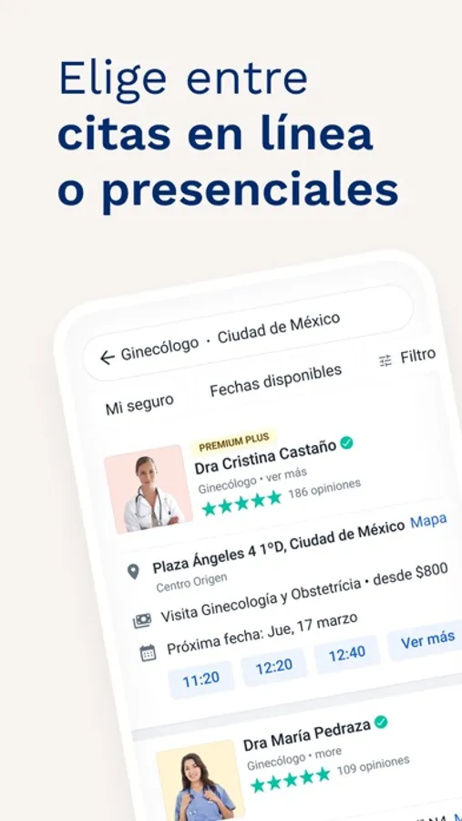 * Acceso a miles de profesionales de la salud. Ginecólogos, nutriólogos, dentistas, cardiólogos, traumatólogos, oftalmólogos, psicólogos, dermatólogos, pediatras, fisioterapeutas, médicos de familia y muchas otras especialidades.
