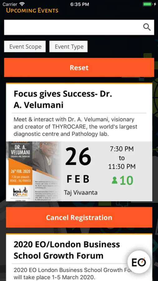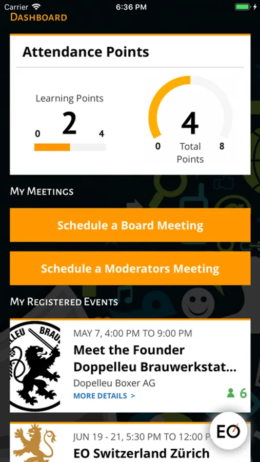EO Infinite provides an EO member not only the functionality of the EO website but much-needed functionality which is still lacking in the website but extremely important for any EO chapter such as meeting scheduling, event ratings, membership cards, forum information, attendance points, retreat agendas, spousal & accelerator access on the same platform as members, notifications, etc.