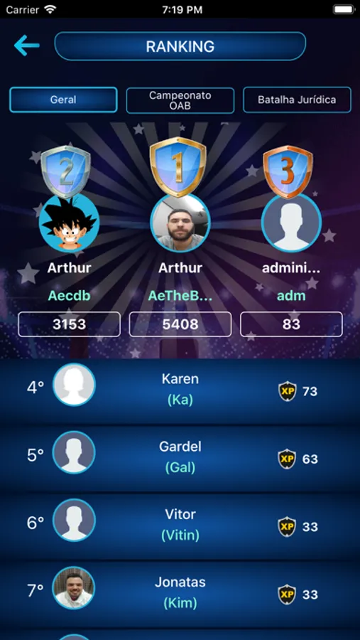 O App possui ainda um Ranking onde serão divulgados os nomes dos vencedores de cada campeonato realizado por nós, e os primeiros lugares a depender da modalidade de competição ganharão prêmios.