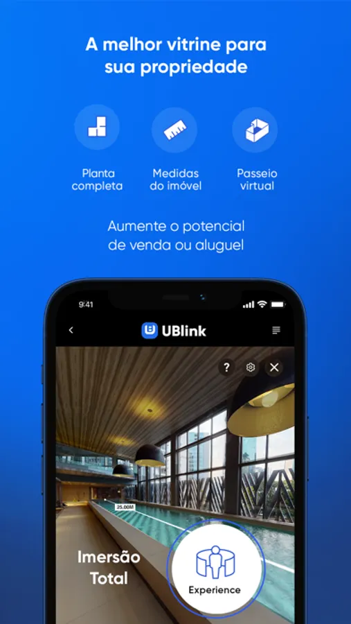A UBlink Experience é um salto na experiência de ensaios fotográficos. Nós vamos preparar, com nossos fotógrafos parceiros e nossa tecnologia, um ambiente em realidade aumentada para que quem está procurando comprar ou alugar, possa conhecer cada detalhe do seu imóvel, antes mesmo de visitá-lo!
