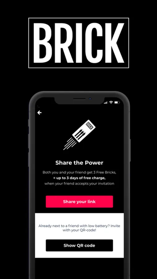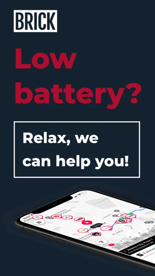 We have created a network of charging stations for portable power banks that you rent "on-the-go". Open the Brick app and find the nearest Brick station on the map. Then scan the station's QR code and rent a power bank that you can charge your mobile, tablet or headphones with. When you have finished charging, you can return the power bank to any Brick station. Works with all mobile phones.