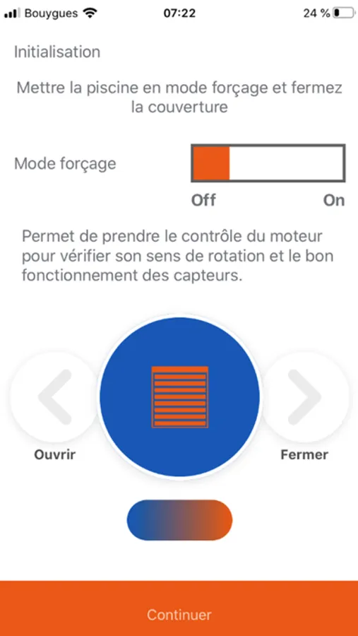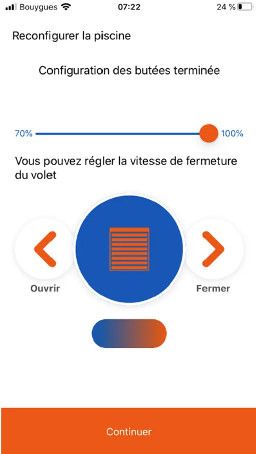 Cette application permet aux installateurs de paramétrer les fins de courses et de régler la vitesse de fermeture à l'aide du smartphone en bord de bassin.