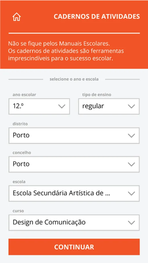 • Apresenta-lhe os cadernos de atividades automaticamente, permitindo-lhe encomendar, de uma só vez, tudo o que o seu educando precisa para o próximo ano letivo.