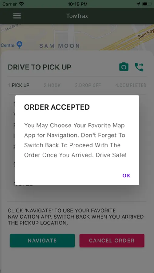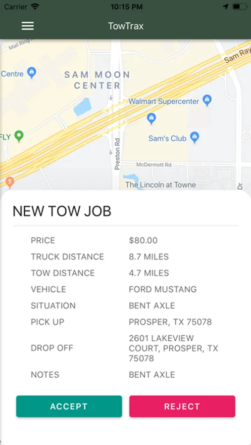 TowTrax Truck is an app that aims to improve the road assistance service (tow, flat tire, breakdown, etc.) for motorists by providing a platform for tow companies to share the network. Upon receiving road assistance requests from entities such as insurance companies and motor clubs, the app automatically finds and notifies the closest drivers to provide the service. This technology creates a win win situation for both the tow companies as they get more tows by sharing the network through the app, and motorist because the waiting time is significantly reduced due to the fully automatic process.