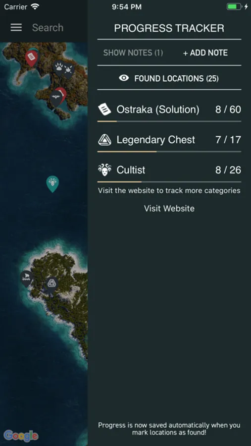 • Progress Tracker - mark locations as found and track the progress of your collectables.