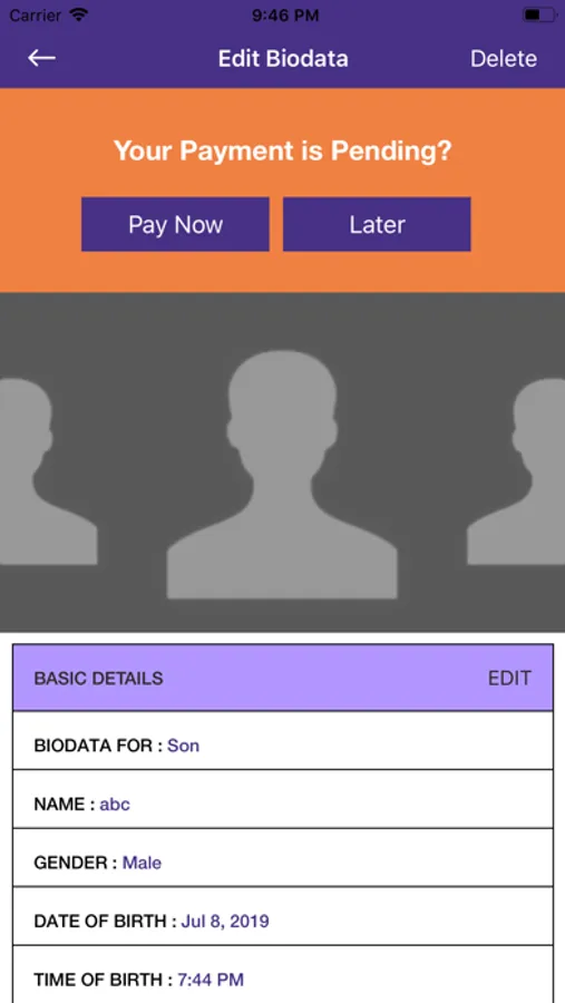 1) Add Biodata - You can Add biodata for Self, Son, Daughter, Sibling, Friend, Relative.