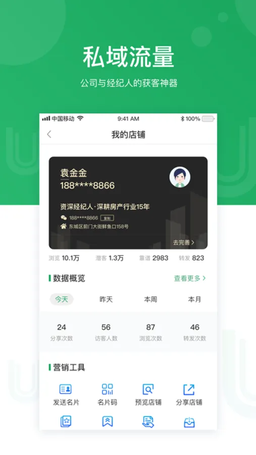 【外部赋能】一键同步58、幸福里、房天下等流量平台;超完善的分享工具;实时结算系统佣金;完善的权证售后体系等