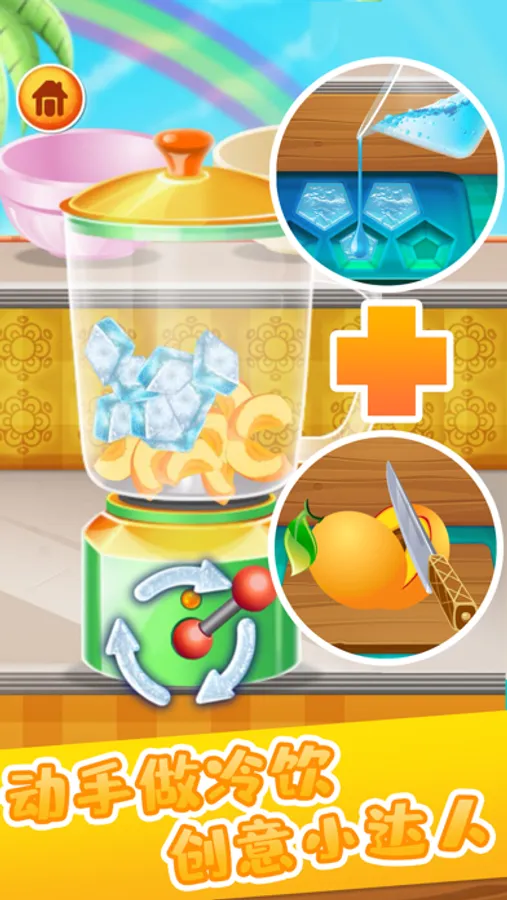 水果切一切、机器点一点,快来帮小伙伴们制作可口的果汁吧