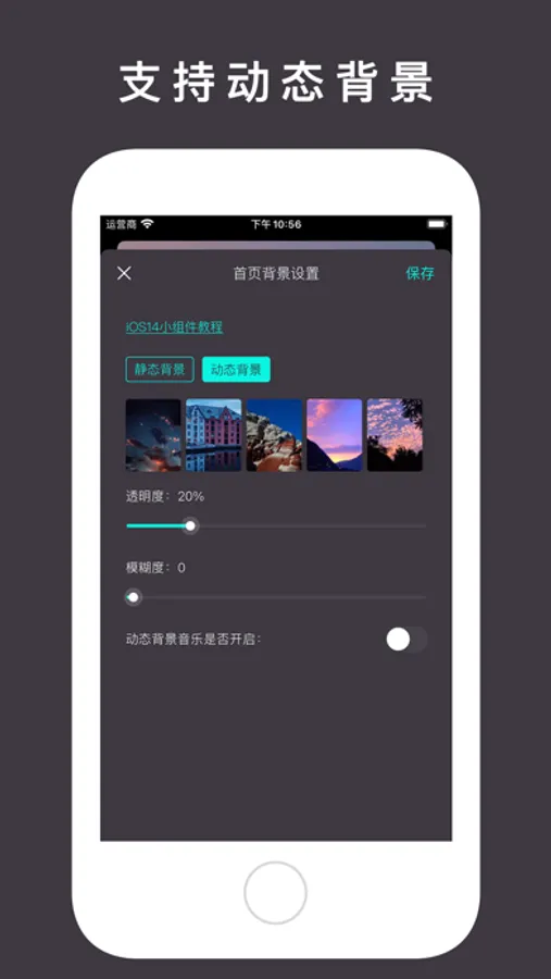 【动态背景】支持动态背景设置;