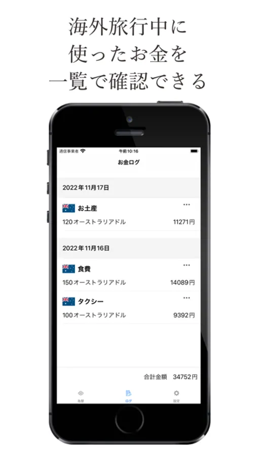このアプリは、対応している海外の通貨を入力すると日本円に変換して、使ったものを保存できるアプリです。オフラインでも使うことができます。