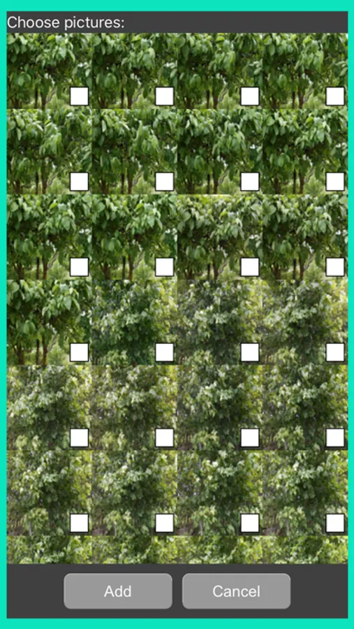 In the “Add Pictures 1” window, you can select all pictures by double-clicking on the window. And by clicking the window three times with your finger, you will delete all the selected images.